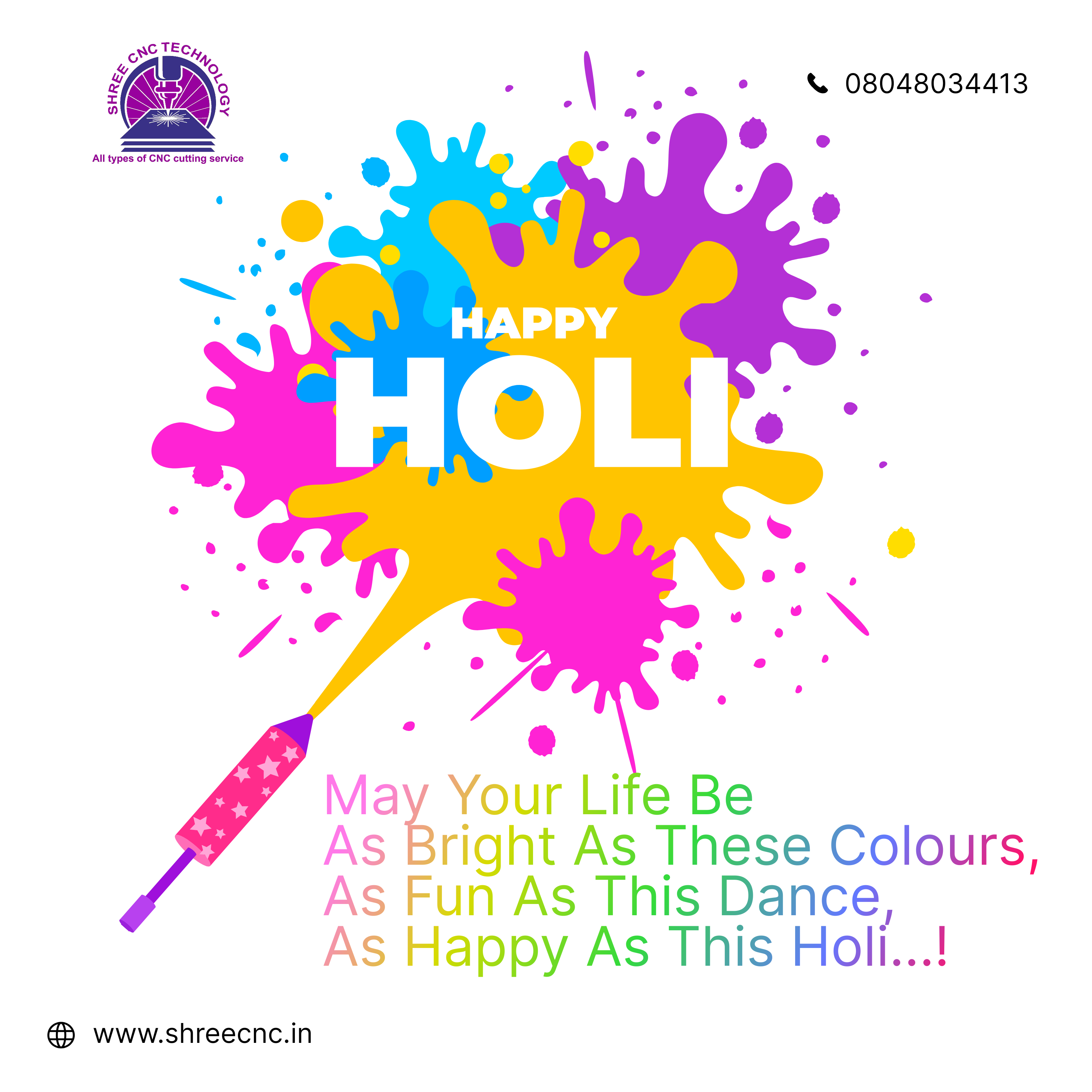 π¨πΈ May the colors of Holi wash away worries and fill your life with smiles and success. Wishing you a bright and joyful Holi 2026! β¨