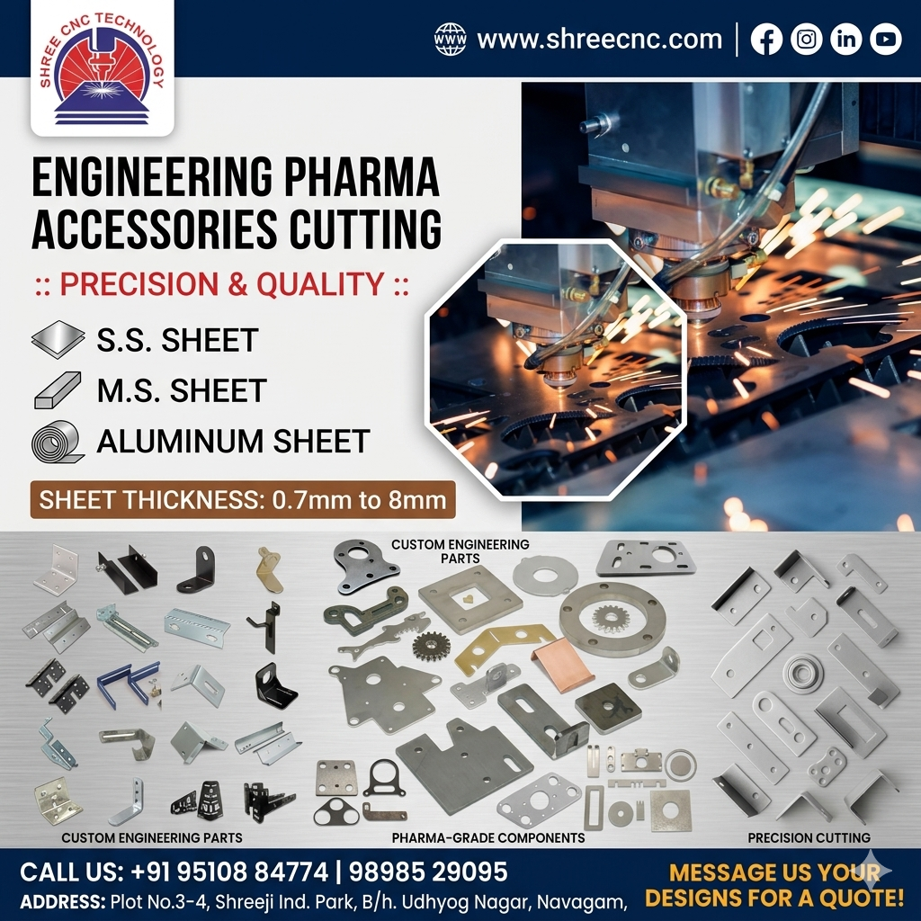 #ShreeCNCTechnology #CNCCutting #PharmaEngineering #LaserCutting #SheetMetalFabrication #EngineeringAccessories #StainlessSteelCutting #IndustrialManufacturing #GujaratEngineering