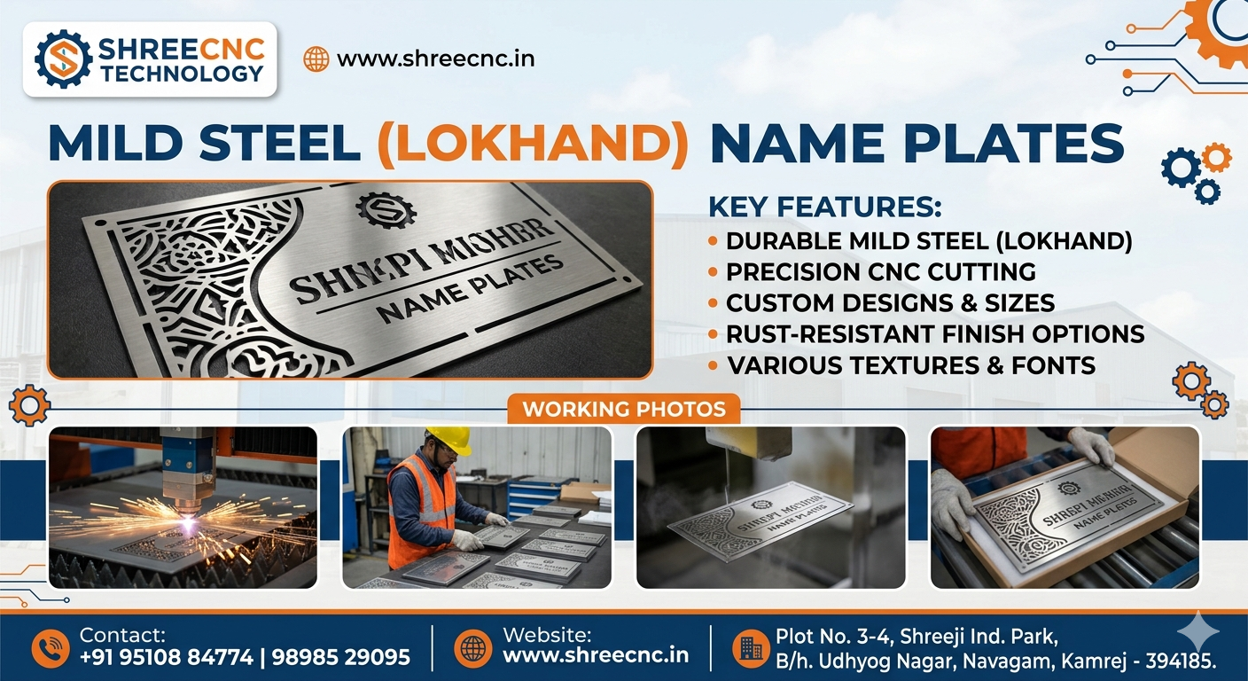 #ShreeCNCTechnology #CNCCutting #MildSteel #NamePlates #Lokhand #CustomSignage #InteriorDesign #ArchitecturalDesign #IndustrialSigns #SuratBusiness #MadeInIndia