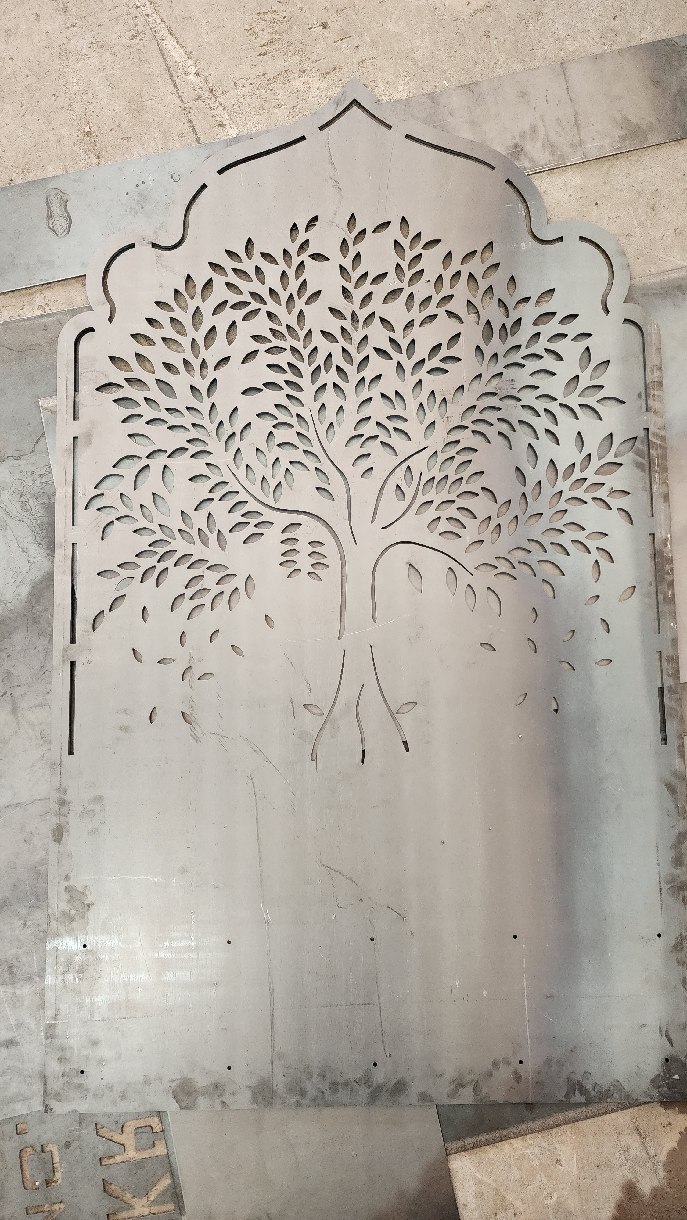 Mild Steel Laser Cut Tree Design Panel This beautifully crafted mild steel laser-cut panel features an elegant tree design symbolizing growth and nature. Precision laser cutting ensures clean edges, perfect detailing, and a smooth finish. This design is ideal for safety doors, gates, partitions, wall décor, or architectural panels. Made from durable MS sheet, it offers both strength and modern aesthetics.